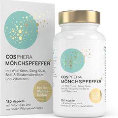 Cosphera - Mönchspfefferpulver Kapseln mit Wild Yams, Dong Quai, Traubensilberkerze, Vitamin B6, B12 und Eisen